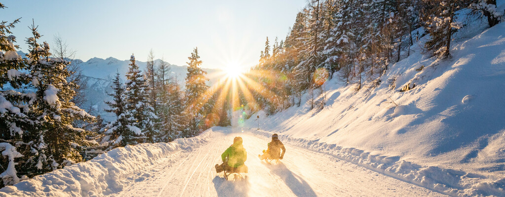 První sněhové vločky tiše padají z nebe, děti se smějí na zasněžených loukách a v horách se třpytí slunce na bílých svazích – takto vypadá zima v Dachstein West.